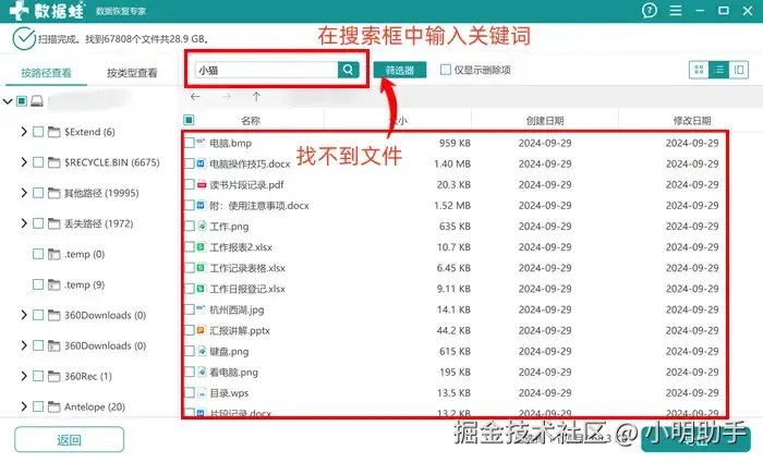 如果找不到文件也不用慌张,还可以选择使用软件的“搜索框”,快速找到需要的文件。