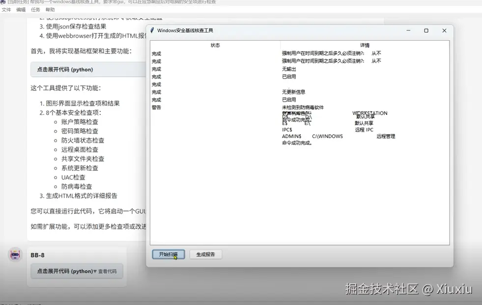 提示词:写一个windows基线核查工具,要求带gui,可以在应急响应后对电脑的安全项进行检查,包括账户策略检查等