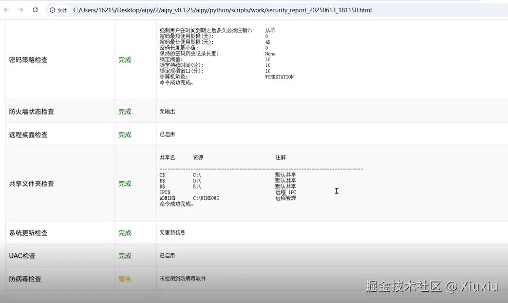 ✅ 报告直接抄作业 : 扫描完自动生成详细报告,高亮标出风险项、给出修复建议
