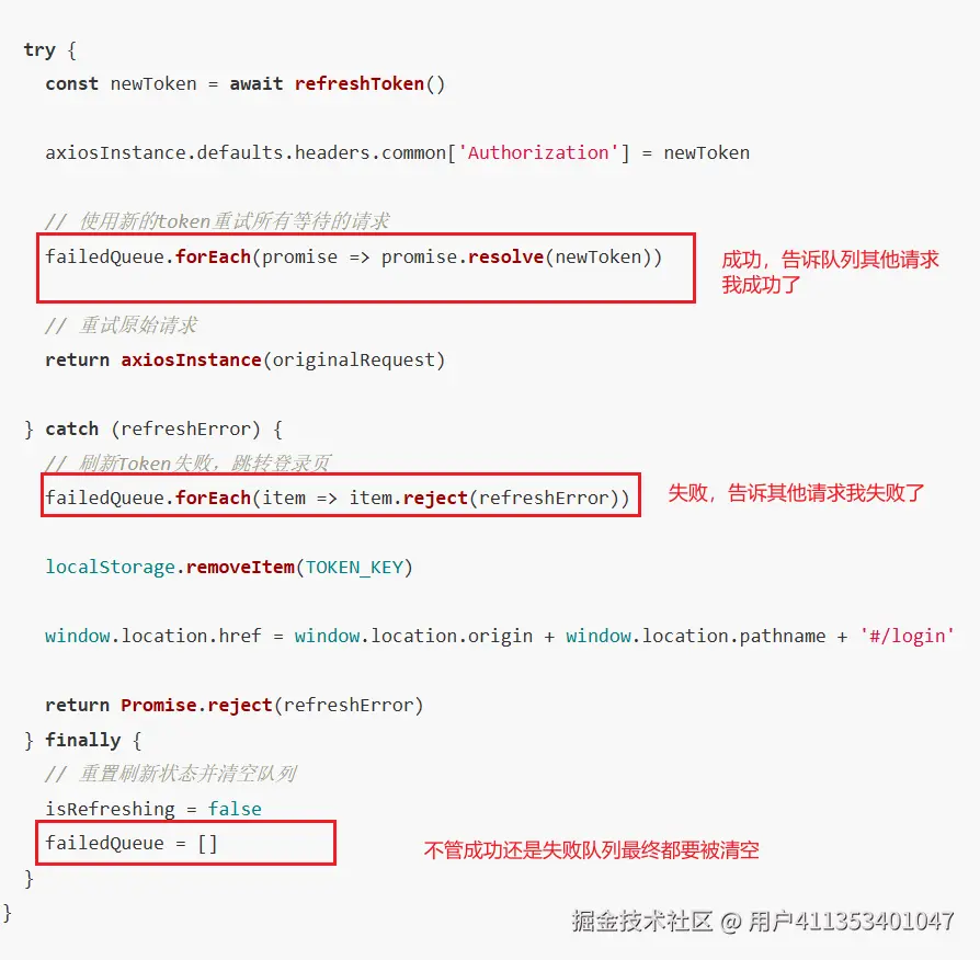 由于我们关于token续期的逻辑是在请求中封装的,那么一旦用户在access_token失败时发起多个请求,那岂不是会触发多个续签请求?