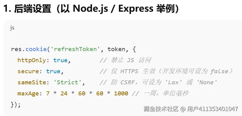 值得注意的一点是,为了安全,一般不会把access_token放到localStorage,而是存储在 HTTP-only Cookie 中
