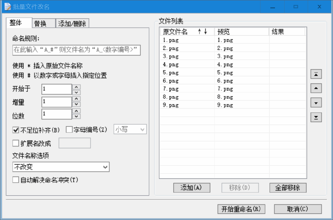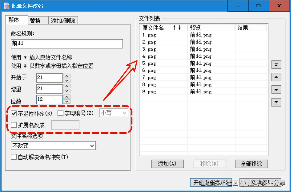 它支持对文件进行整体重命名,输入新名称后可即时预览效果。