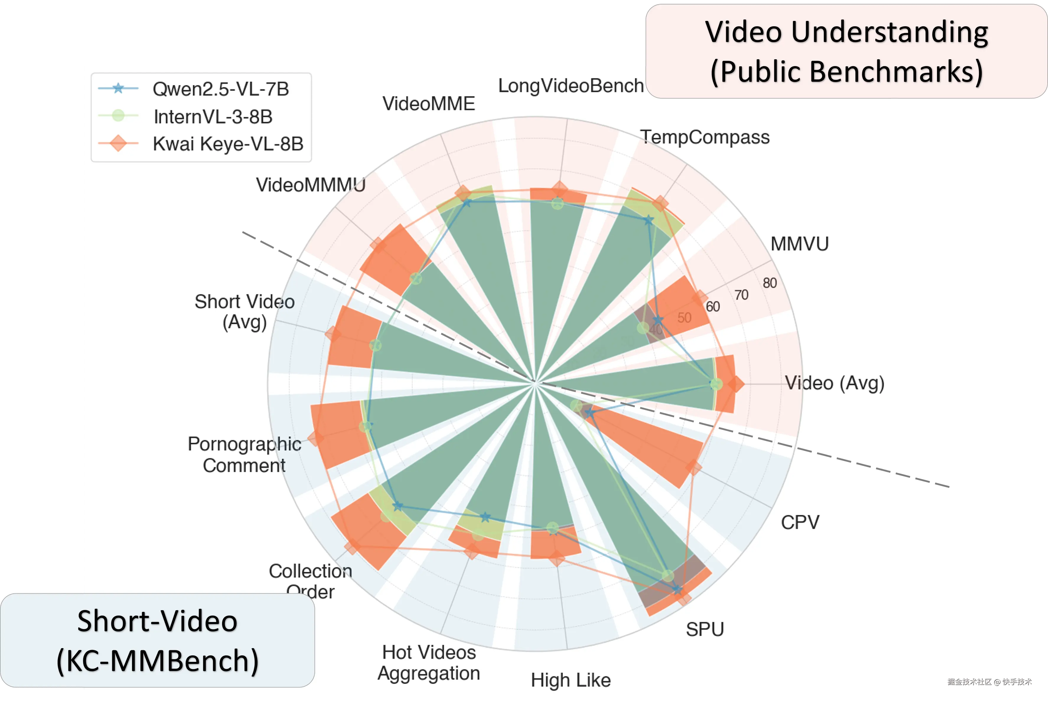 Kwai Keye-VL 通过公开与自建评测双验证,在学术标准与真实短视频场景中均展现出全面领先优势。