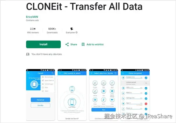 如果您希望手机切换应用程序在没有计算机的情况下传输数据,您可以选择 CLONEit。此应用程序已于 2023 年 9 月 3 日更新,您可以从 Google Play 商店下载。