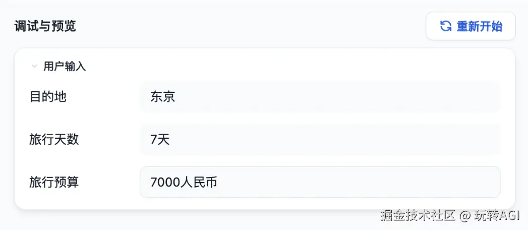 添加变量后,用户可以按照应用开发者的意图向应用提供必要的背景信息,实现的效果如下: