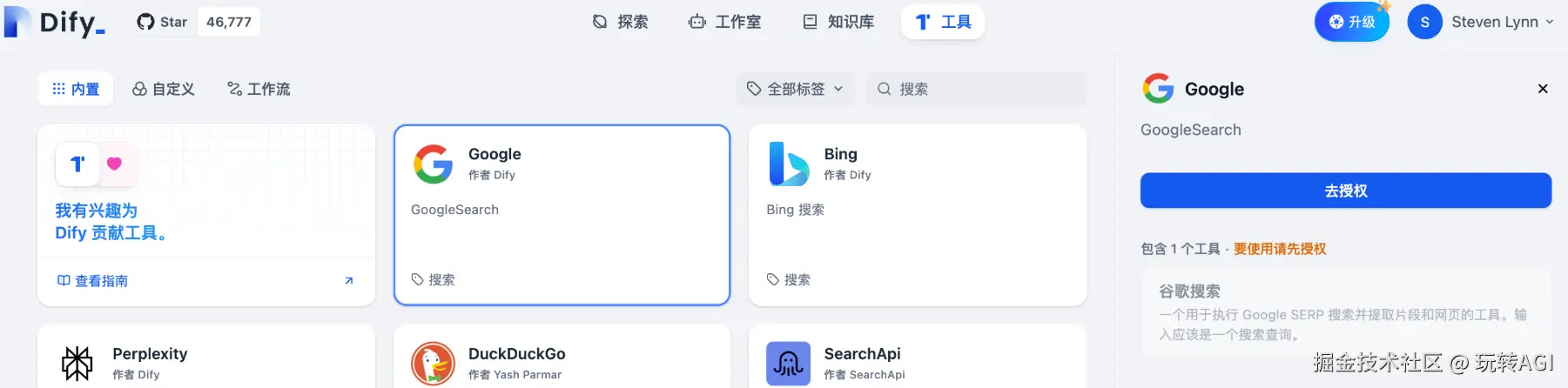 - 前往 Dify-工具-Google: