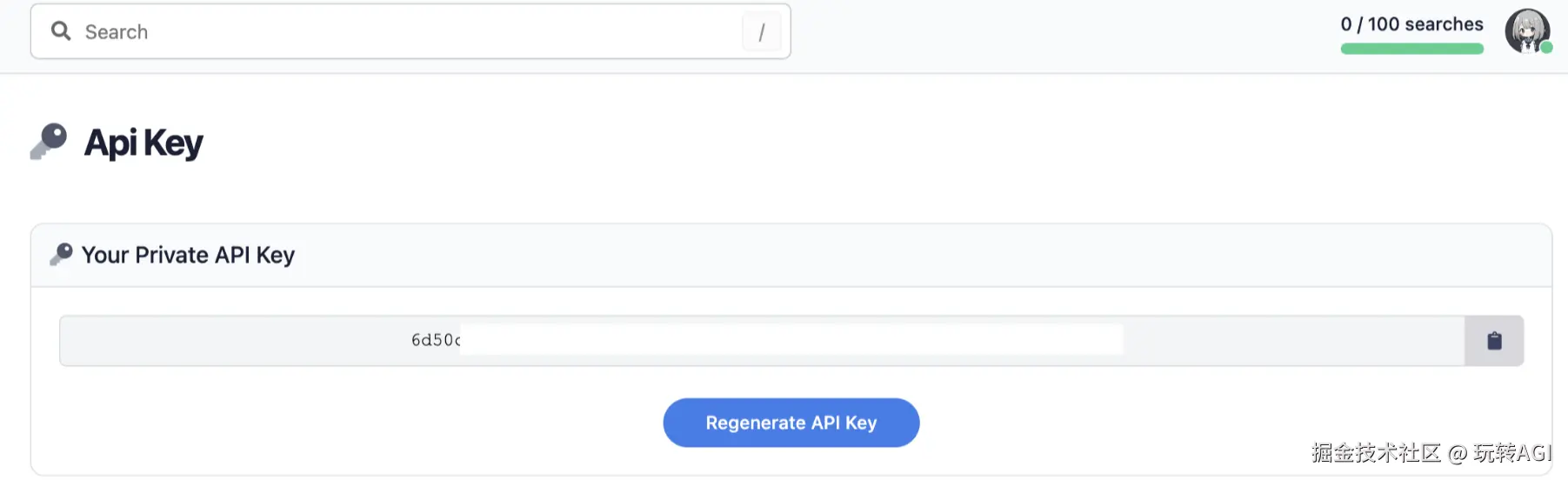 Dify 提供的 Google 工具基于 SerpAPI,因此需要提前进入 SerpAPI 的 API Key 管理页申请 API Key 并粘贴到 Dify-工具的对应位置。