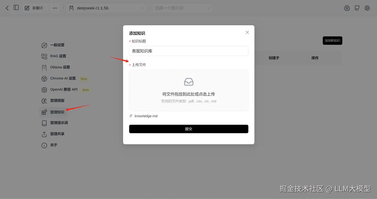 我们还可以通过浏览器插件来访问本地部署的大模型,这个插件还支持本地知识库搭建。