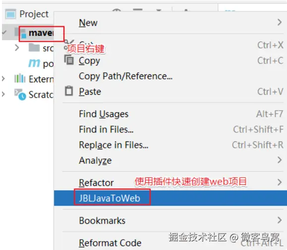 7. 右键、使用插件快速补全web项目