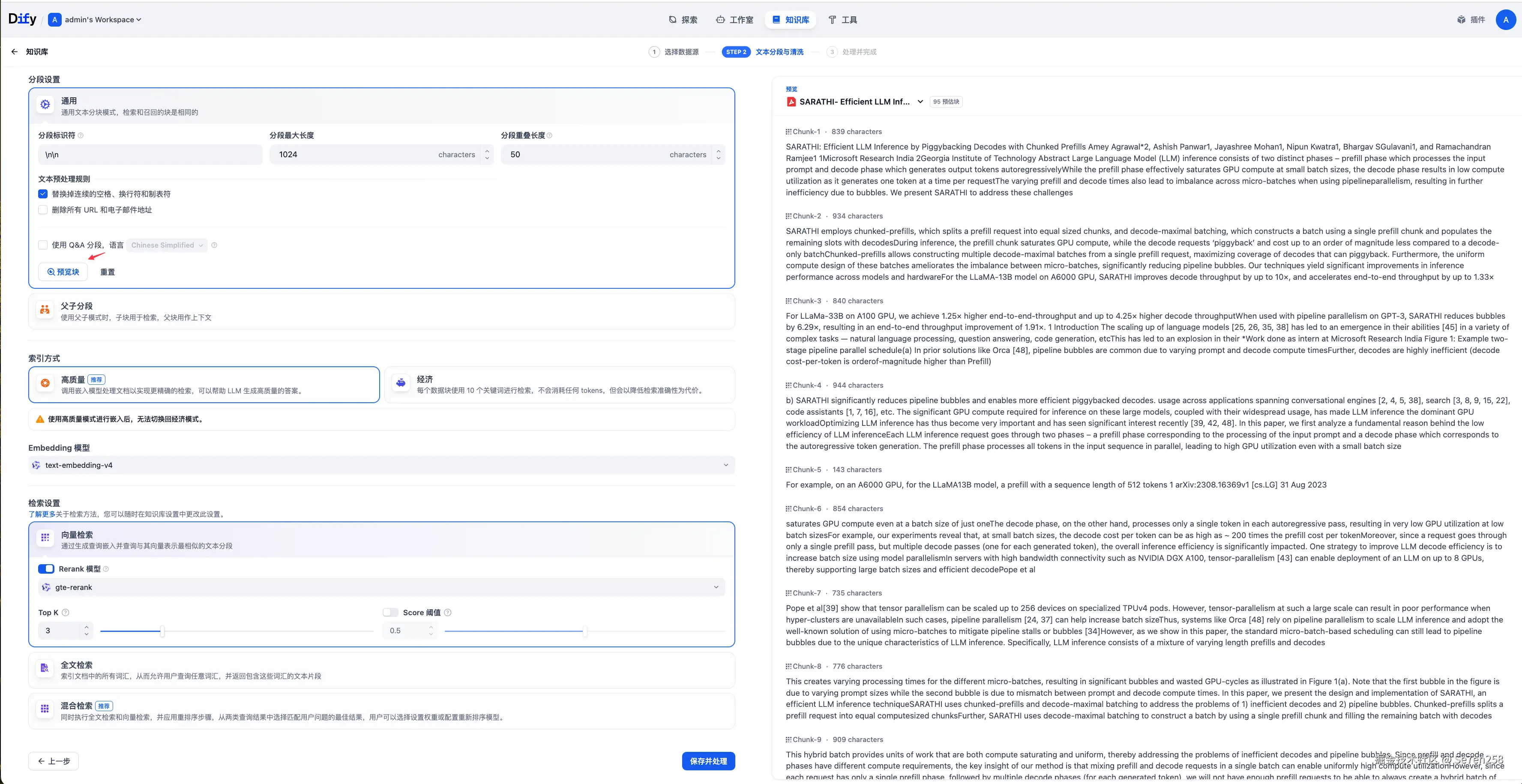 选择导入已有文本,可以直接拖入文件进行索引。这里我上传了两篇关于大模型推理优化技术 Chunked Prefill 的论文。