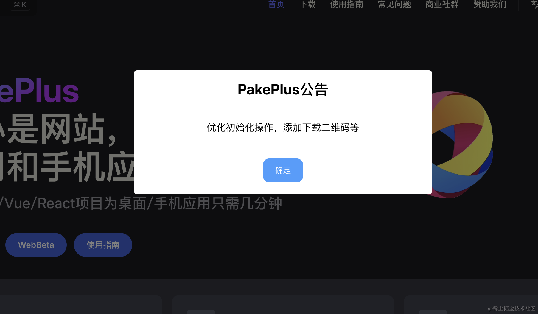 例如我的PakePlus官网,如果遇到什么github或者tauri抽风,我就需要全局通知更新一下最新情况,防止大家错过某些重要的消息。这里的逻辑就需要自己配置了,因为vitepress官方并没有这个配置,我的思路就是:使用自定义的js脚本来实现