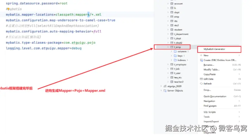 MyBatis 的逆向工程是一种自动化生成持久层代码和映射文件的工具,它可以根据数据库表结构和设置的参数生成对应的实体类、Mapper.xml 文件、Mapper 接口等代码文件,简化了开发者手动生成的过程。逆向工程使开发者可以快速地构建起 DAO 层,并快速上手进行业务开发。 MyBatis 的逆向工程有两种方式:通过 MyBatis Generator 插件实现和通过 Maven 插件实现。逆向工程一般需要指定一些配置参数,例如数据库连接 URL、用户名、密码、要生成的表名、生成的文件路径等等。 注意:逆向工程只能生成单表crud的操作,多表查询依然需要我们自己编写!