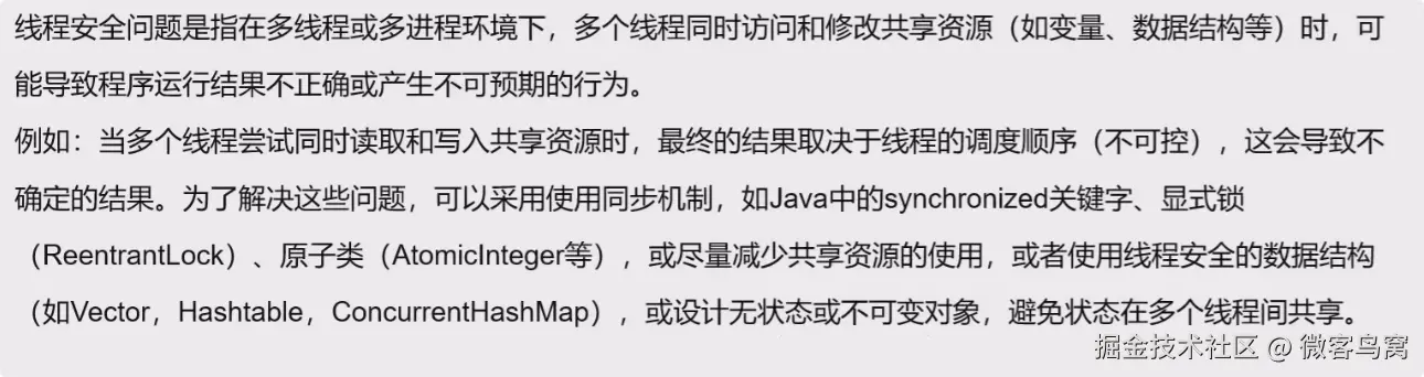 只要上面的3个条件同时满足了,就一定有安全问题。就一定要加synchronized或 juc中的锁。