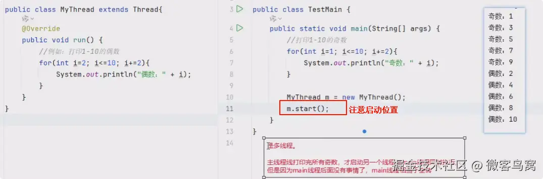 必须重写public void run()方法- 在run方法中编写,你这个线程需要完成的任务代码