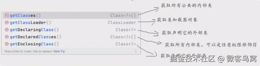 - 这个方法适用于核心类库中或自定义的引用数据类型。不适用于基本数据类型和void、数组,因为它们是JVM内置的数据类型。它们找不到对应的.class文件。