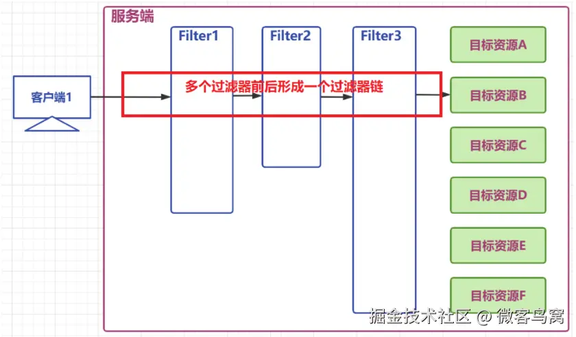 一个web项目中可以同时定义多个过滤器,多个过滤器对同一个资源进行过滤时,工作位置有先后,整体形成一个工作链,称为过滤器链。