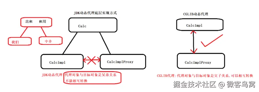 JDK支持动态代理,底层目标对象实现接口方式**(代理对象目标对象关系:兄弟)**