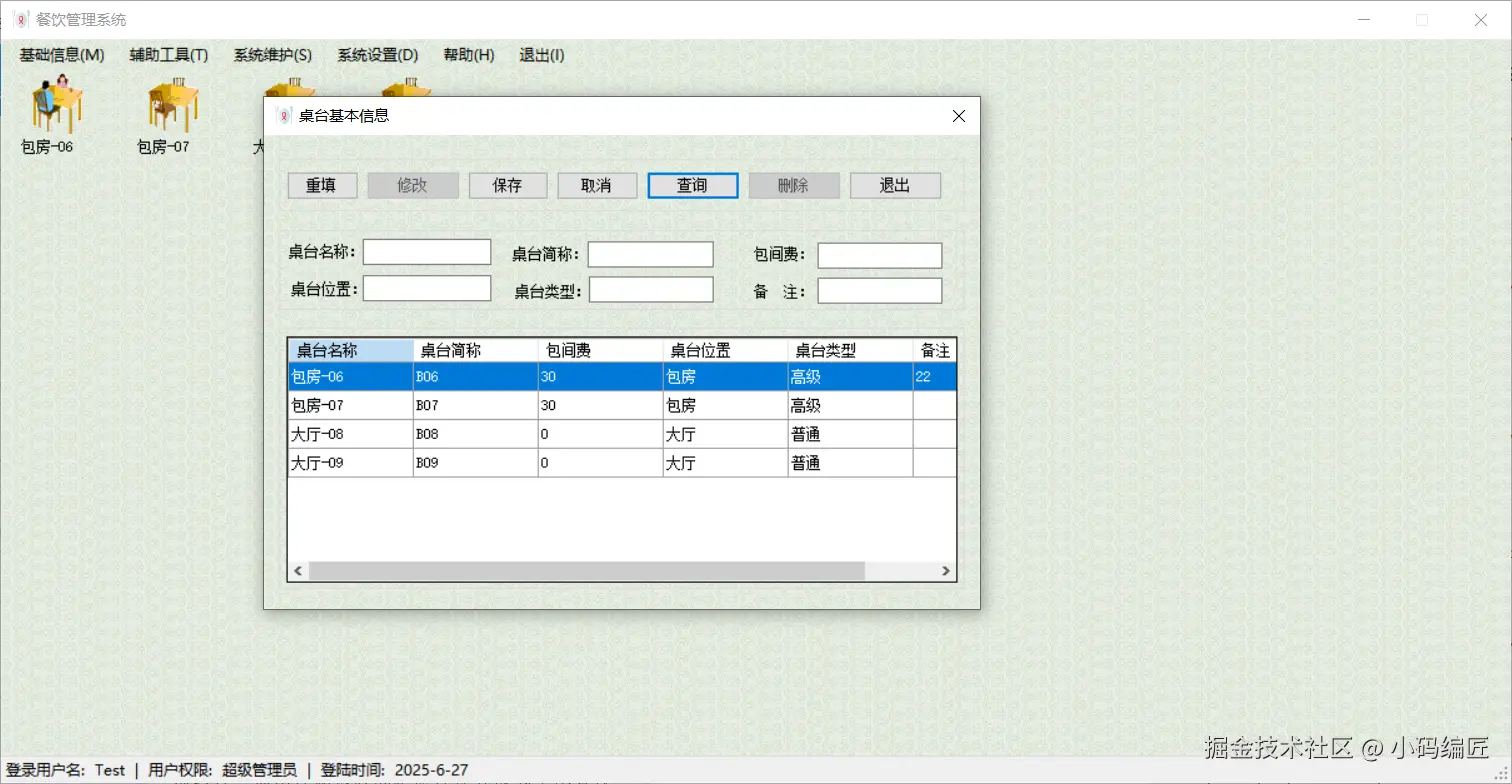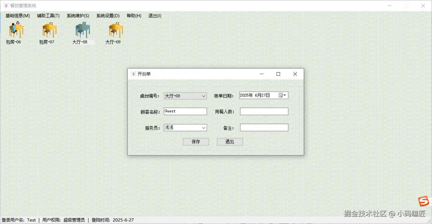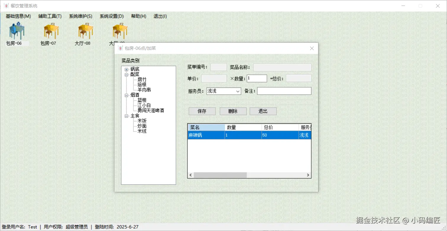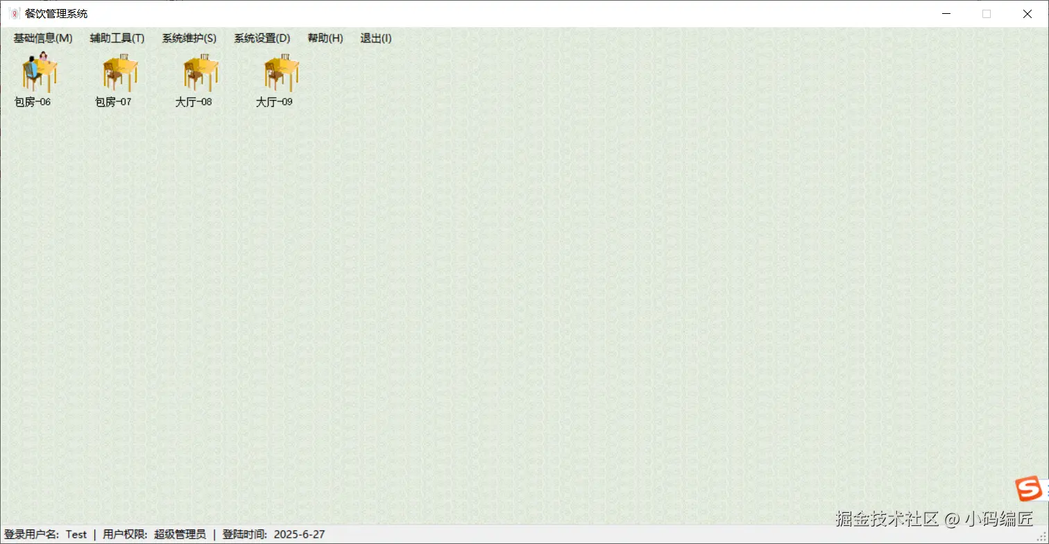 餐饮管理系统、WinForm、C/S模式、SQL Server、用户权限、系统维护、基础信息管理、大厅管理、包房管理、开源项目
