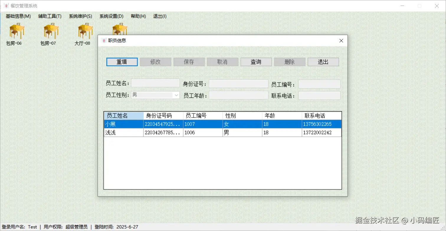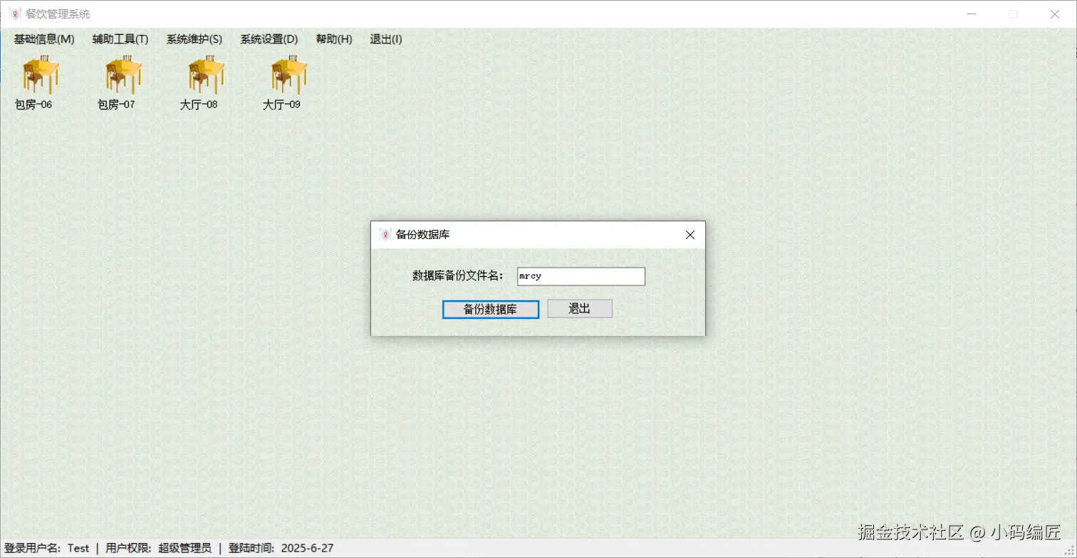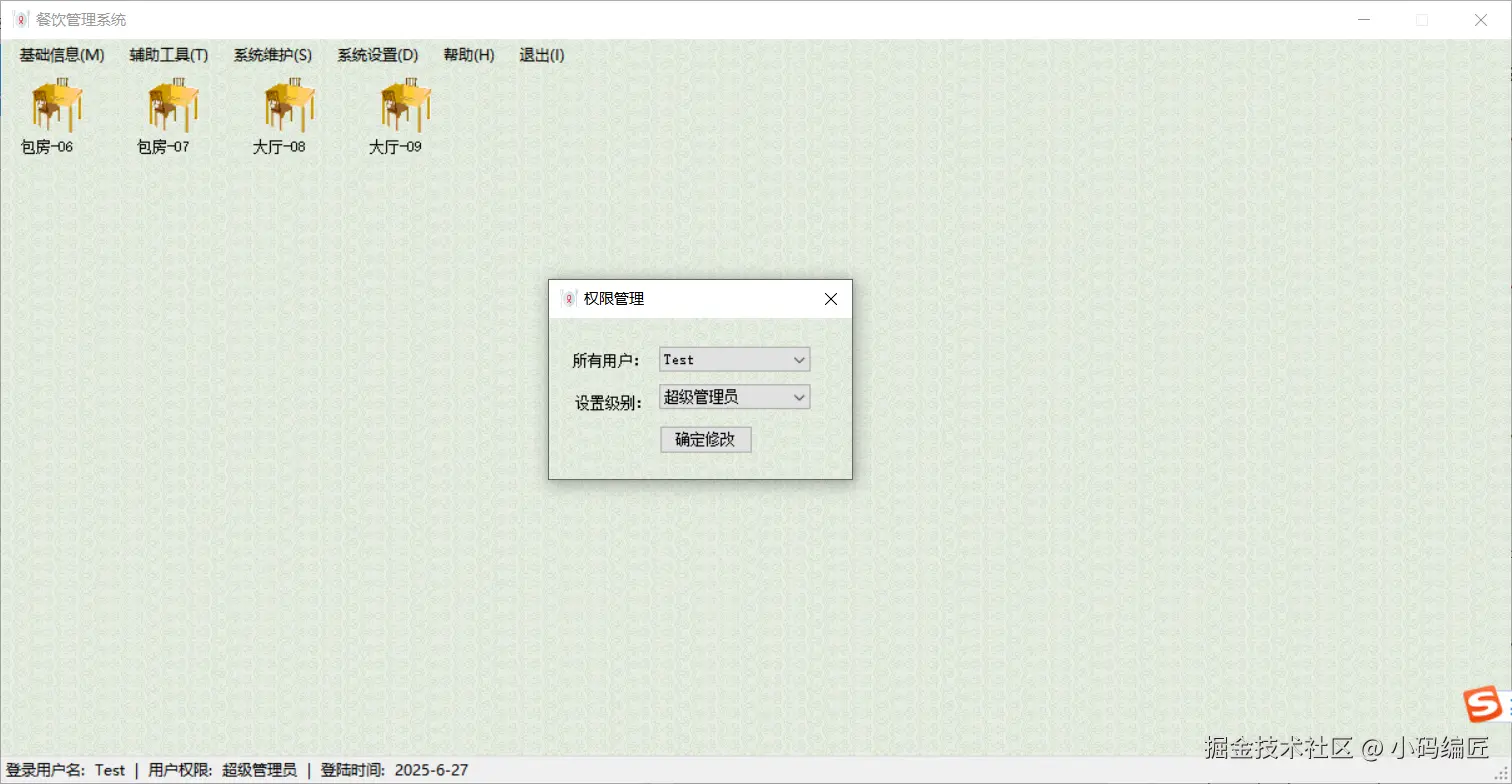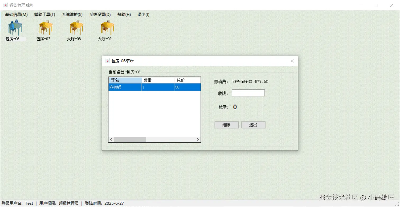 餐饮管理系统、WinForm、C/S模式、SQL Server、用户权限、系统维护、基础信息管理、大厅管理、包房管理、开源项目