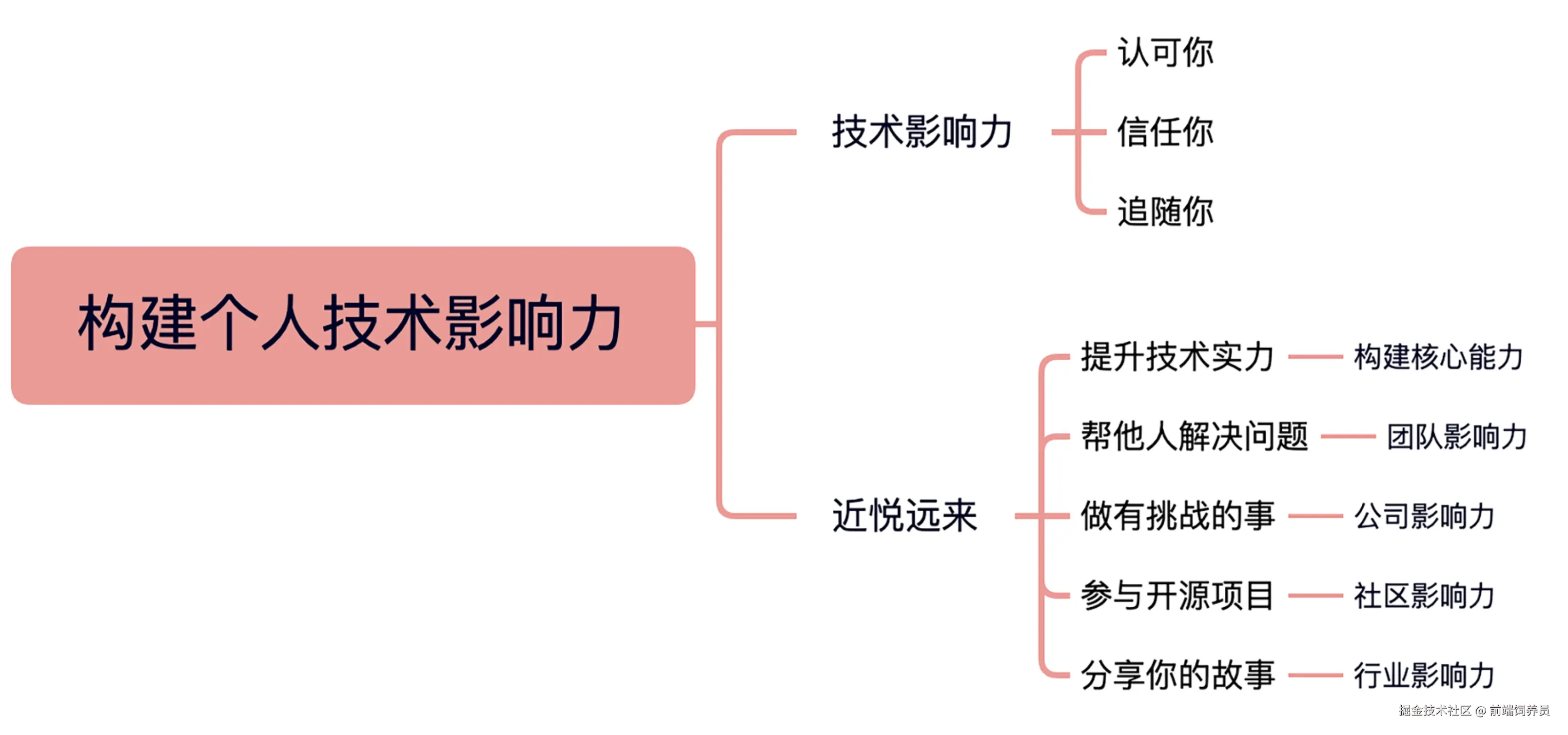 今天我们来聊一聊团队内技术影响力的问题。技术影响力就是在技术领域能够影响别人思想与行为的能力;在团队里,能带动他人学习与成长的能力;在工作中,能够推动系统变革与技术创新的能力。在伙伴的眼里,你能帮他解决技术问题,是可以信赖的技术大佬。通俗的说法就是 在技术领域,伙伴们愿意认可你、信任你、追随你。