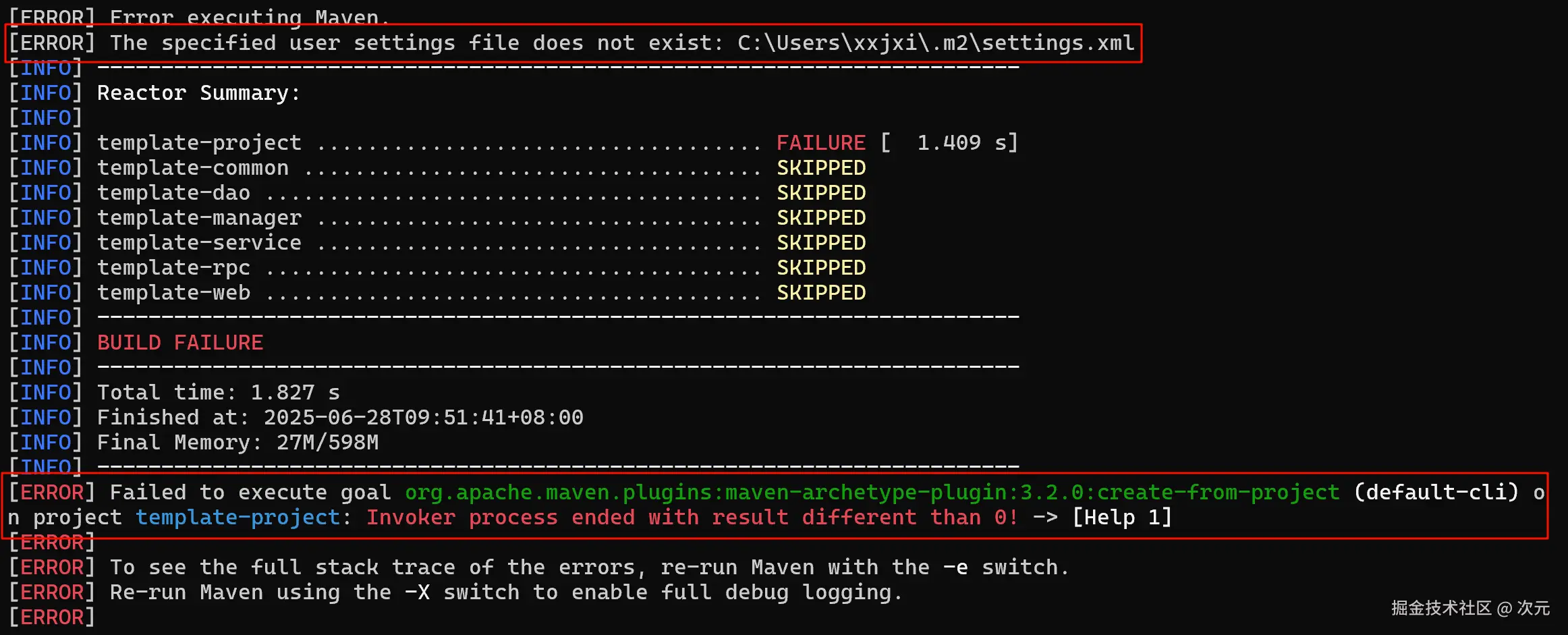 执行mvn archetype:generate -DarchetypeCatalog=local命令