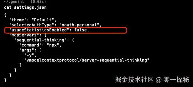 然后添加到~/.gemini/settings.json文件中: