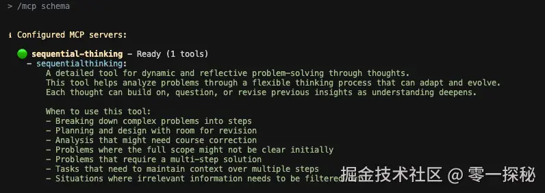 在命令行执行*/mcp schema*可以看到已经成功运行: