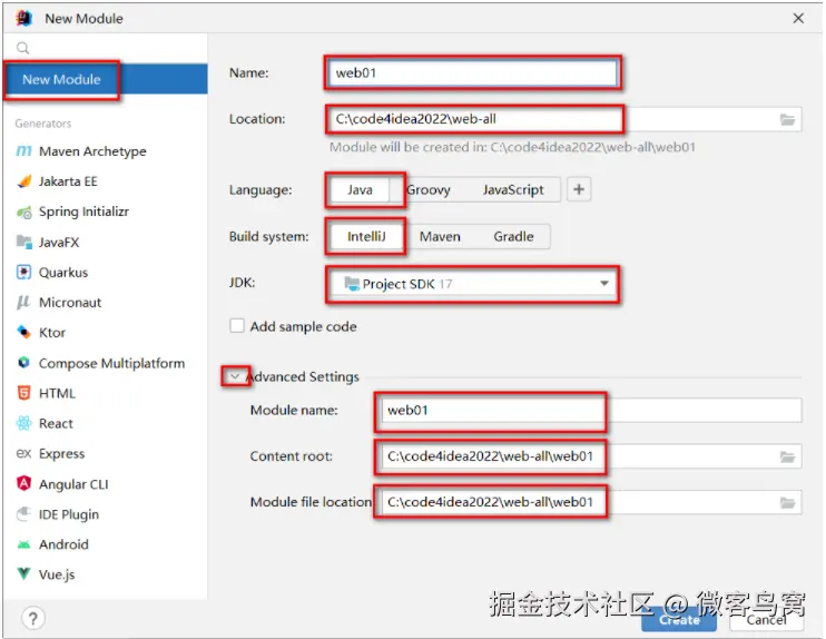 - 先创建一个普通的Java项目: