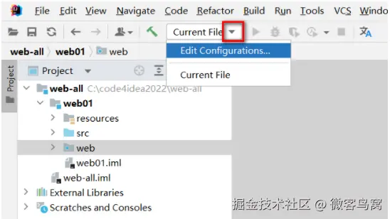 - 点击向下箭头,出现 Edit Configurations选项:
