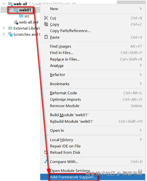 - 选择modules,添加 framework support: