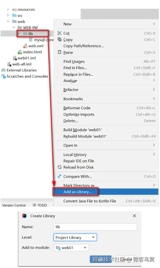 - 在WEB-INF下创建lib目录。