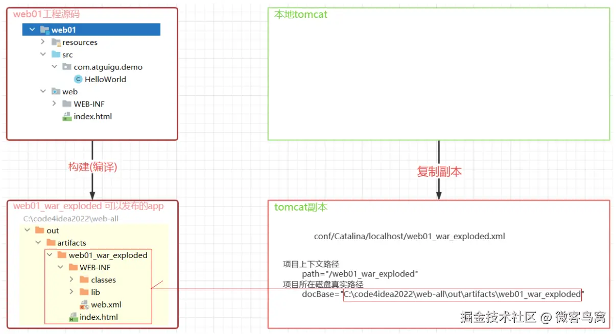- idea启动Tomcat时,是让本地Tomcat程序按照Tomcat副本里的配置文件运行;