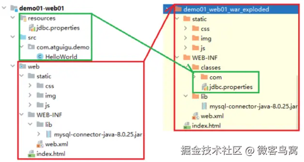 - 工程结构和可以发布的项目结构之间的目录对应关系: