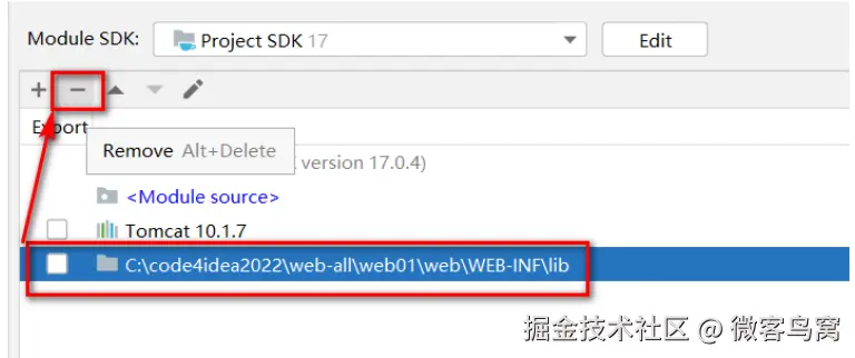 - 在此位置,可以通过-号解除依赖。