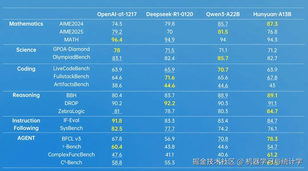 3是Hunyuan-A13B-Instruct-GPTQ-Int4 量化模型与 Instruct 差别极小,几乎是精度无损!