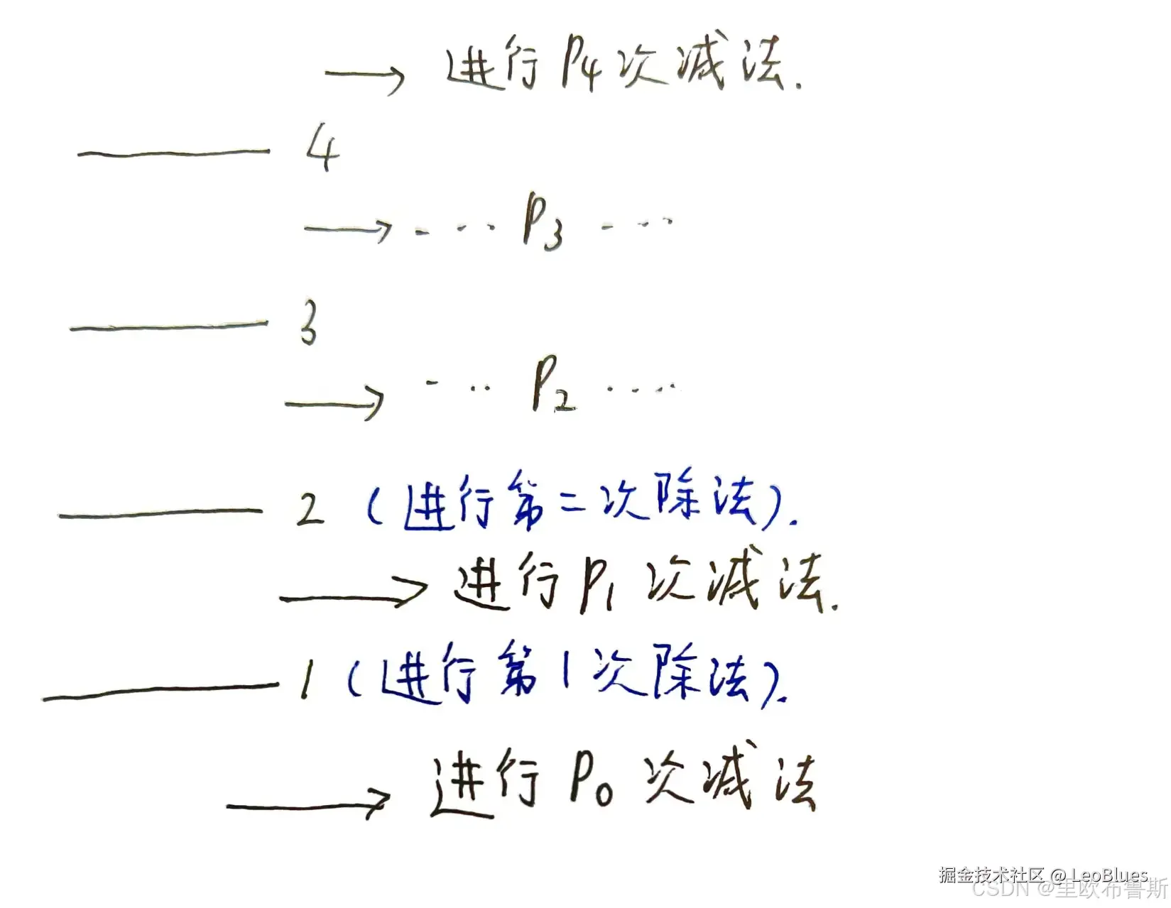 第一步:先进行p_0次减法操作,这里令y=p_0