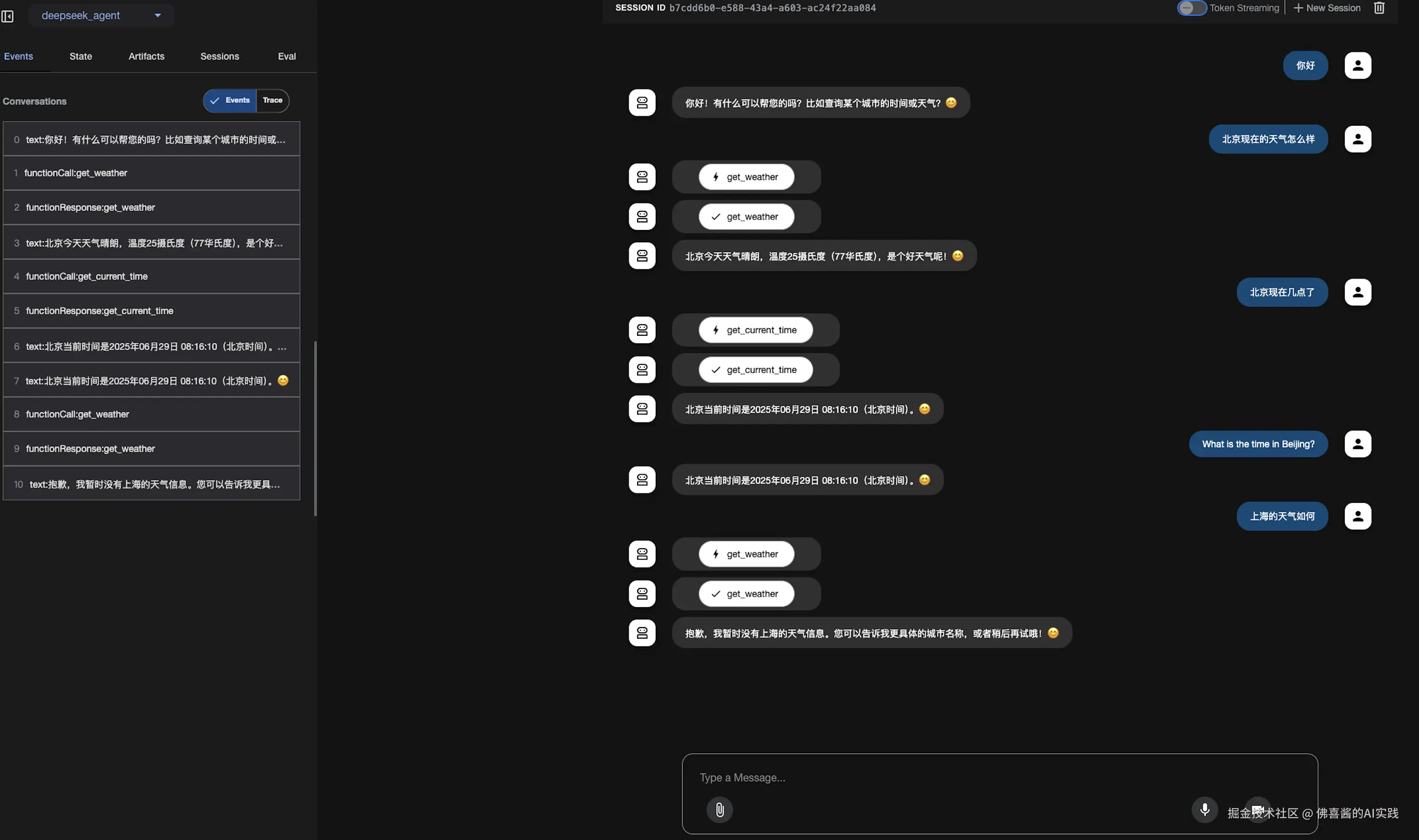 - 开始与基于Deepseek模型的Agent对话