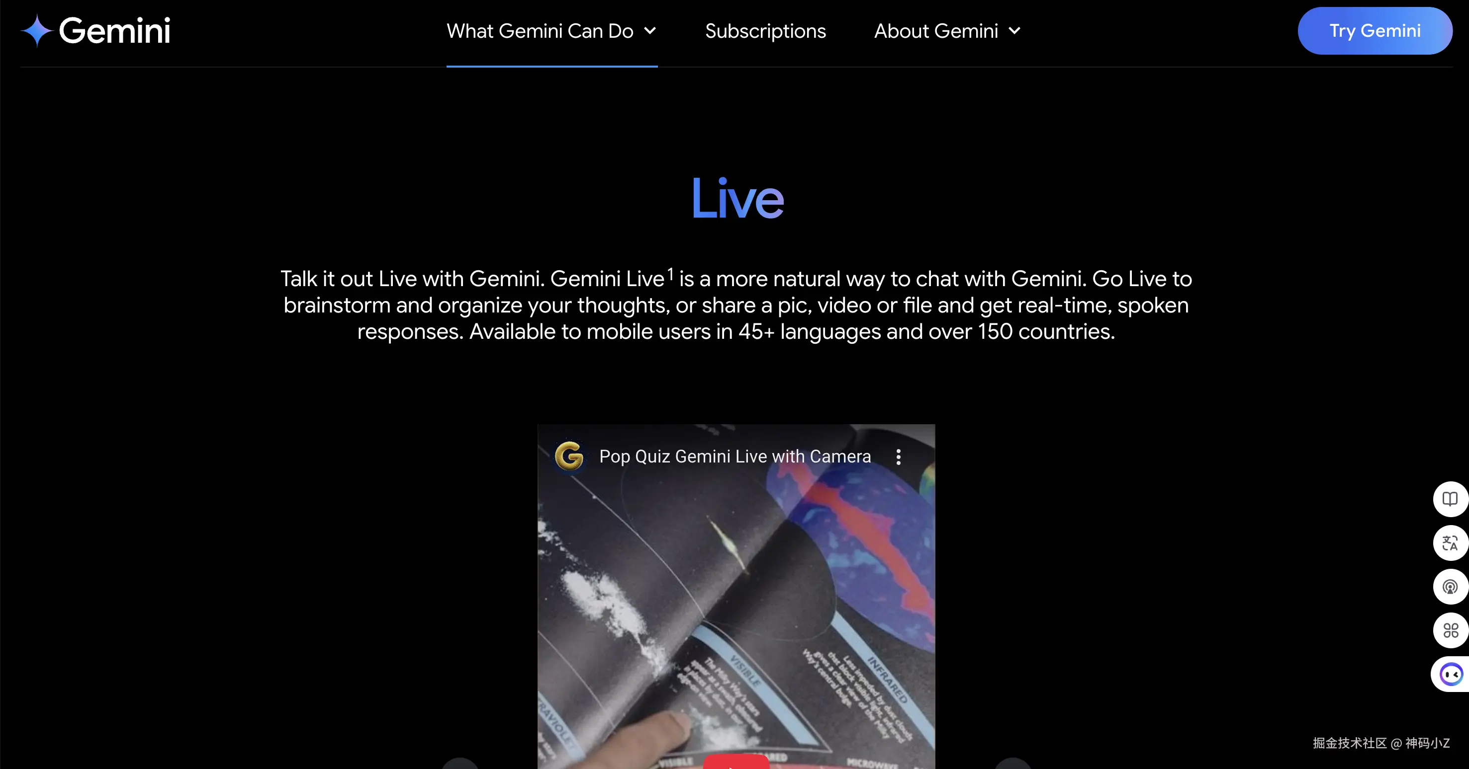 Gemini Live是Google推出的实时AI对话助手,支持语音交互、摄像头分享和屏幕共享,让AI交互更加自然流畅。