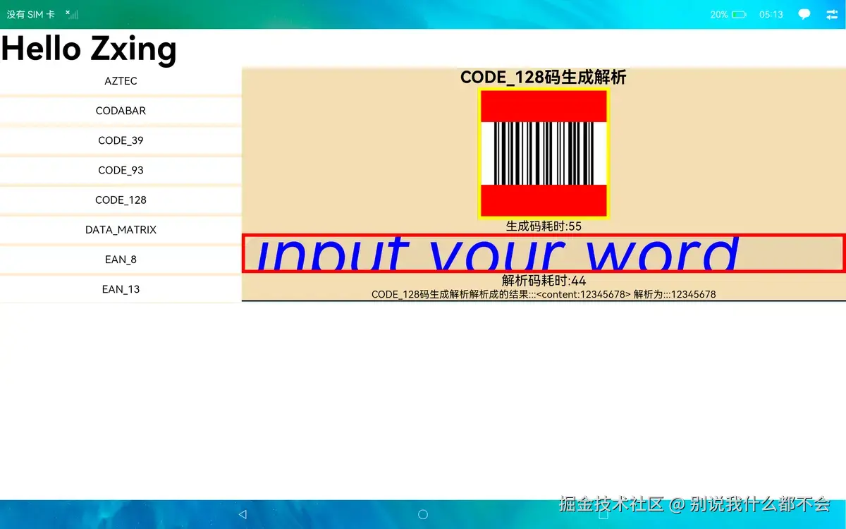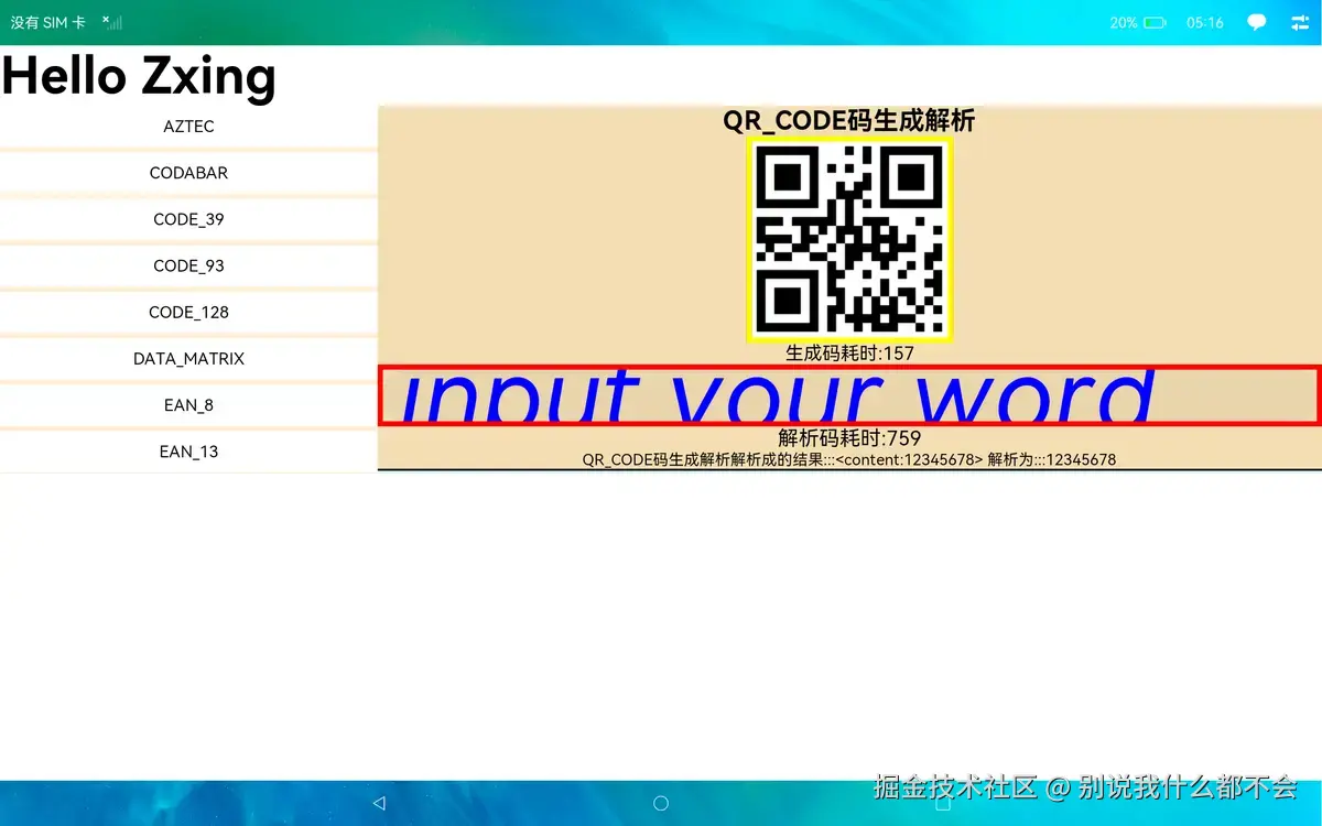 其中QR_CODE、DATA_MATRIX、AZTEC、PDF_417、MAXICODE生成和解码时传入的宽高不支持小数