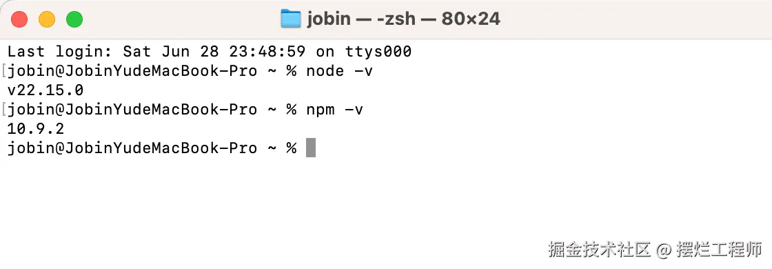 如果输出对应的版本信息代表环境安装成功,请确保 Node.js 版本为 18.0以上或更高版本的。