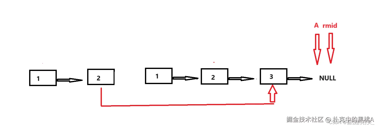 将链表中间结点及以后的节点反转(相当于链表的后半段构成了反转的新的链表)第三步: