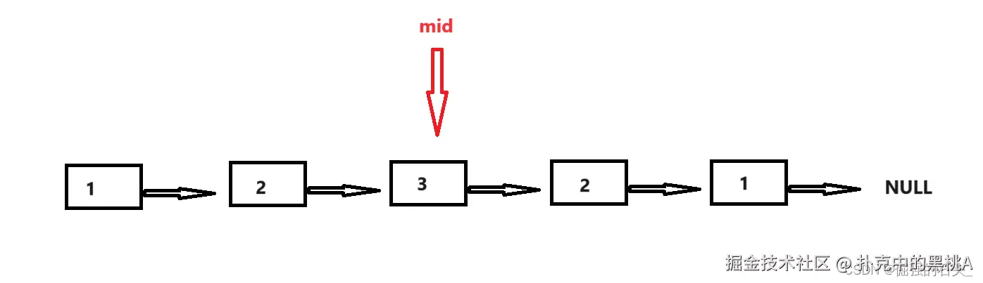 编辑两个指针同时走向了NULL,说明链表为回文结构