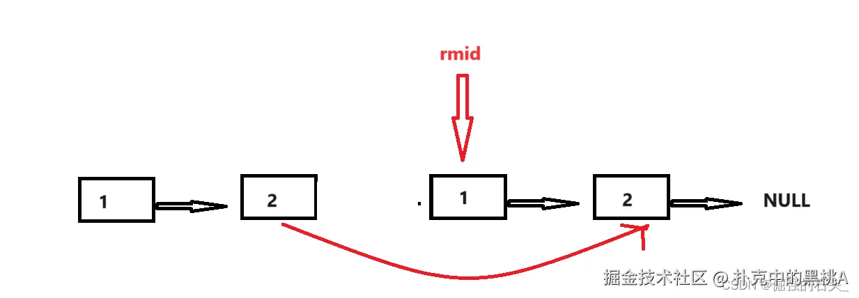 struct ListNode* rmid = reverseList(mid);//后半部反转后的中间节点