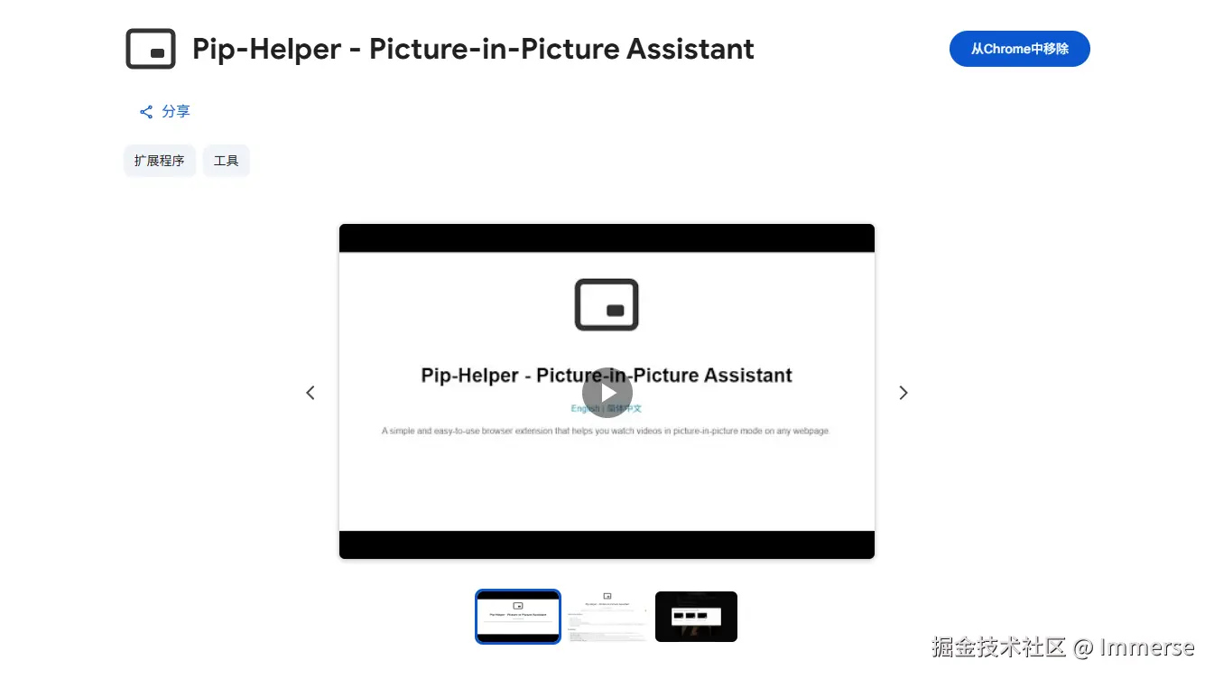 Pip-Helper 一款简单易用的画中画浏览器扩展,帮助你在任何网页上都能使用画中画功能观看视频。