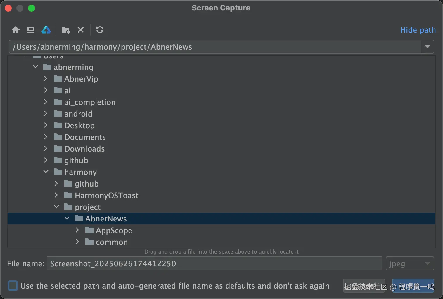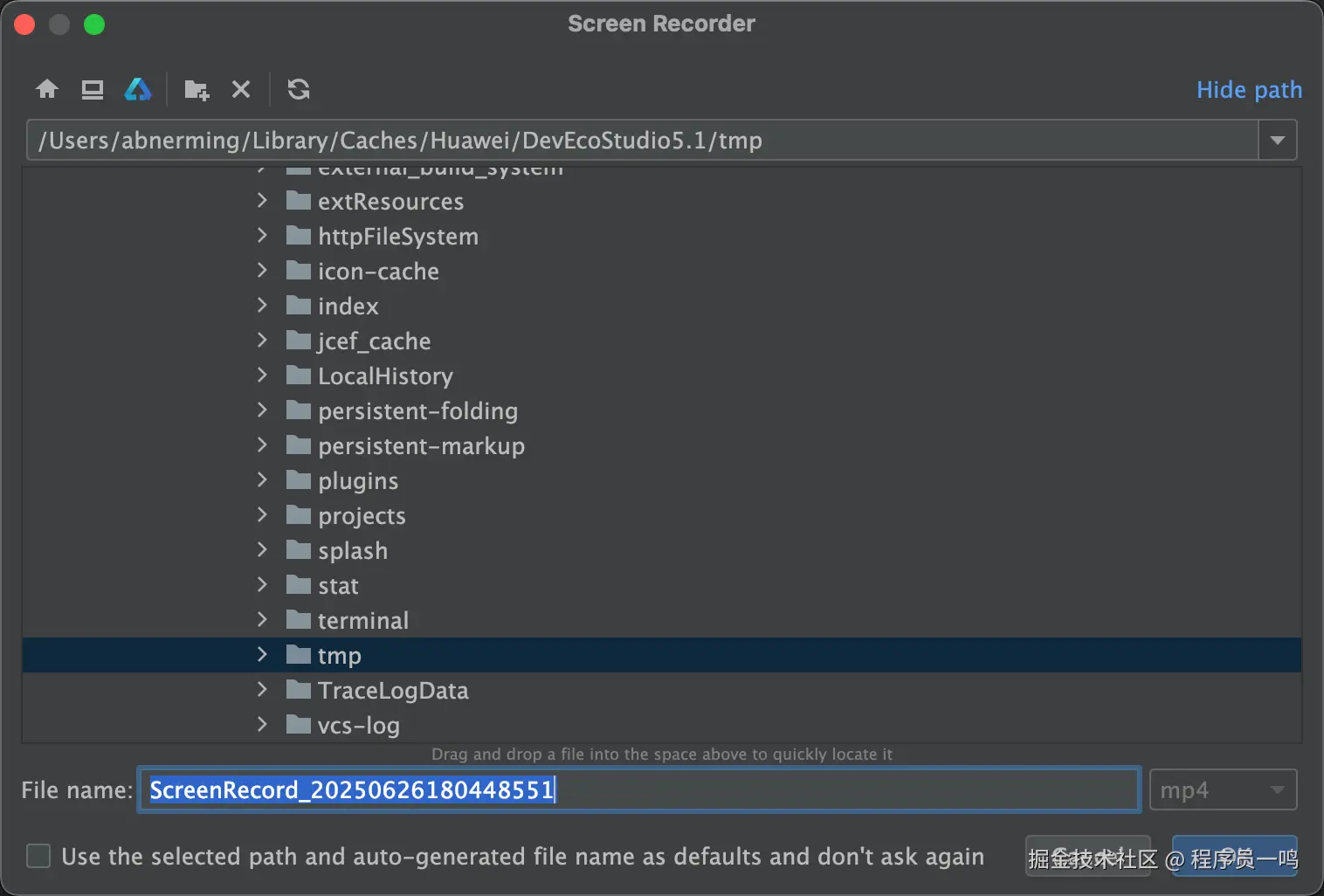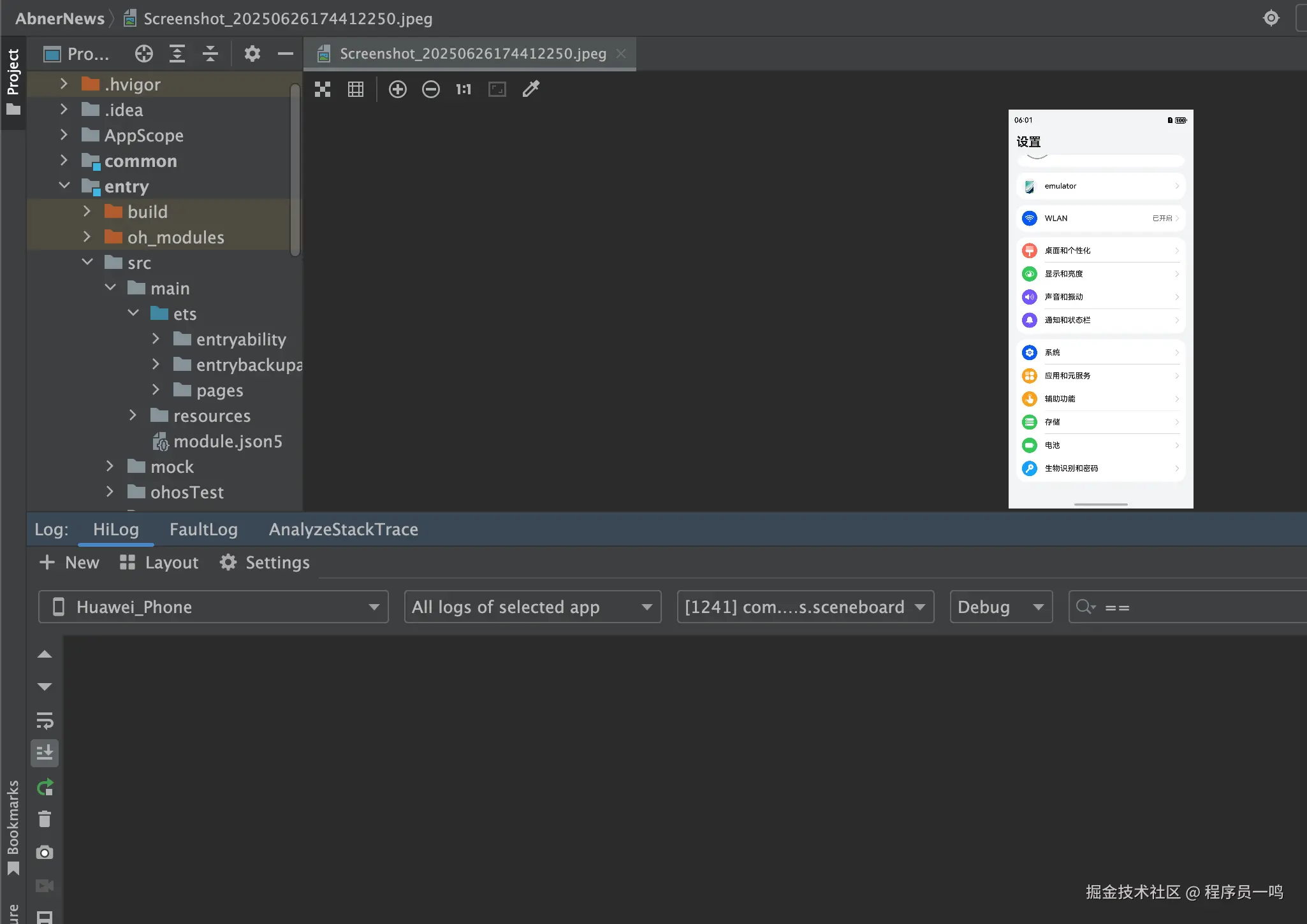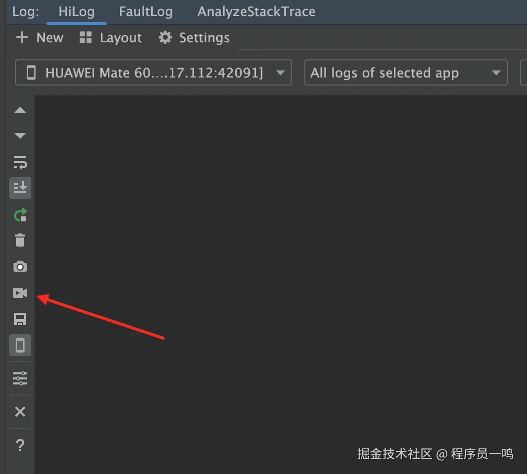 除了以上的两种方式之外,其实在DevEco Studio中,已经集成了截屏和录屏功能,我们完全可以使用自带的功能,帮助我们来实现,相对其他的方式,则更加的简单和便捷。