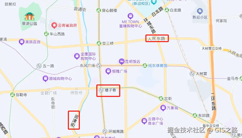 在GIS开发中,沿街(沿线)标注(Street Labeling)是一种常见的地图标注方式,主要用于在地图上显示街道名称或其他与街道相关的信息,可以帮助用户快速定位和识别道路,能够提升地图的可读性和实用性。日常使用的互联网地图也都实现了沿街标注功能,而在OpenLayers中完成沿街标注也很简单,只需简单设置文本样式即可。
