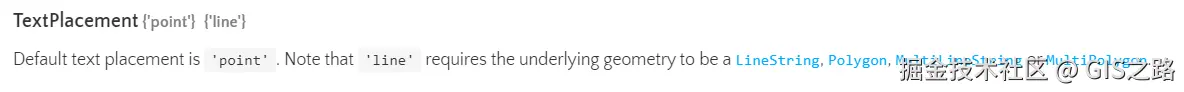 街道标注样式包括道路样式和文字样式两部分,道路样式设置为streetStyle,文字样式设置为labelStyle。在OpenLayers中要实现沿街标注,需要将placement属性设置为"line"。placement类型为TextPlacement,该类型具有两个值"point"和"line"。文字标注默认标注类型为"point",而只有在几何对象类型为LineString、Polygon、MultiLineString或者MultiPolygon时,placement的值才可以设置为"line"。