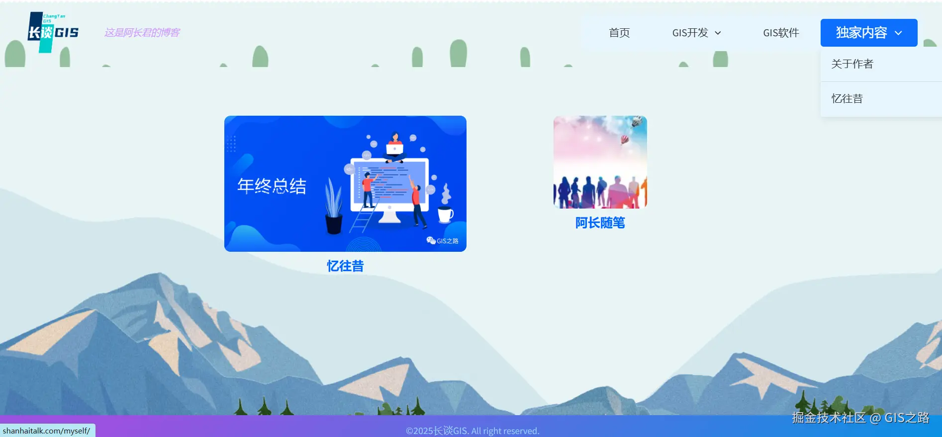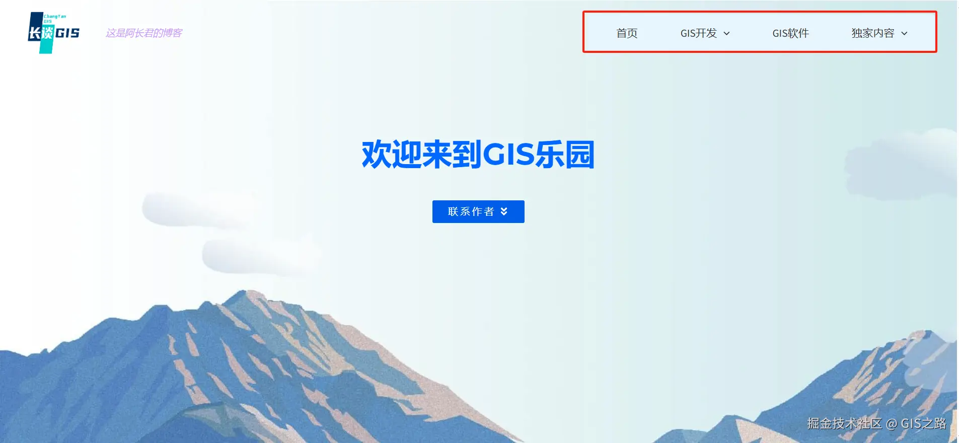 我将博客网站划分为四个部分如下图,分别是首页、GIS开发、GIS软件、独家内容。