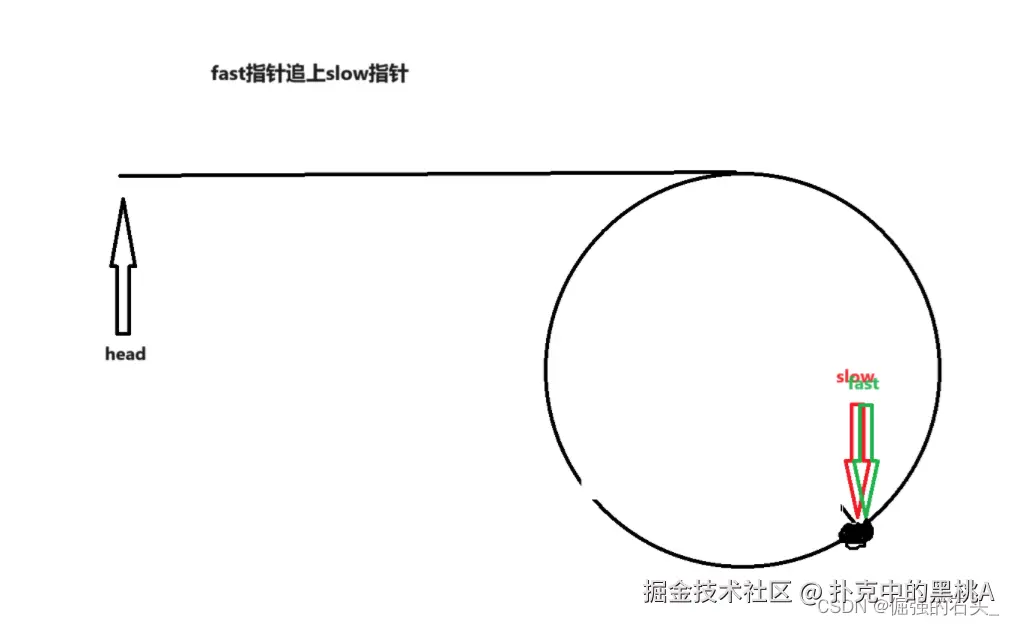 第三阶段: 从慢指针进环 到快指针追上慢指针