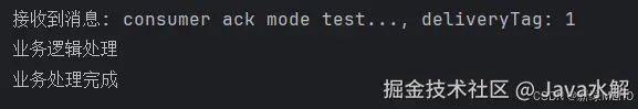 ⼿动确认模式下, 消费者必须在成功处理消息后显式调⽤ basicAck ⽅法来确认消息. 如果消